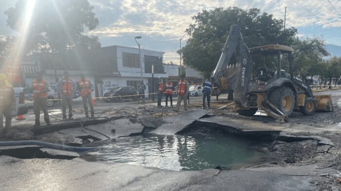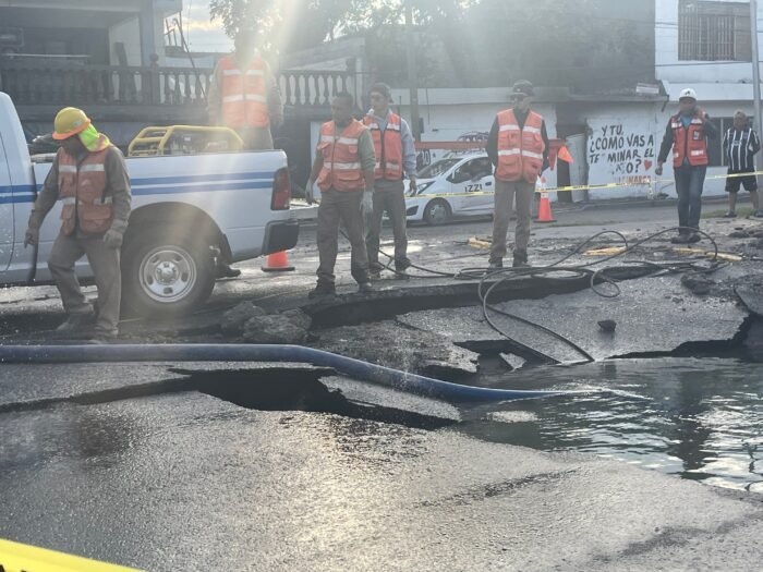 La ruptura ocurrió en avenida López Mateos y calle Zihuatlán, donde la presión del agua generó un hoyo de más de dos metros en la carpeta asfáltica. Esta situación provocó una megafuga que sorprendió a los vecinos desde primeras horas del día. Autoridades reiteraron que los trabajos de reparación son prioritarios y buscan minimizar las afectaciones.