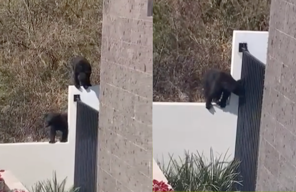 Una mamá osa y sus tres oseznos ingresaron a un domicilio en la colonia Sierra Alta luego de brincar la ...